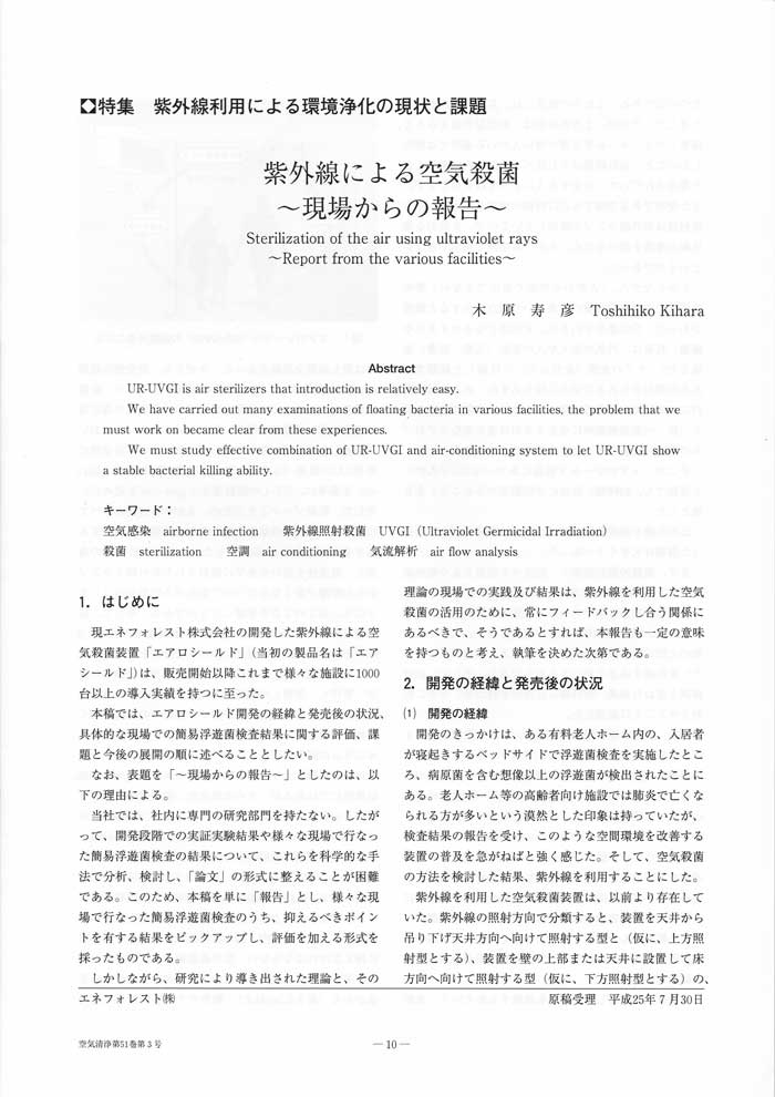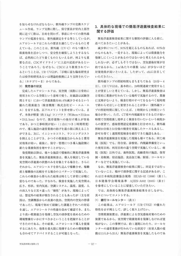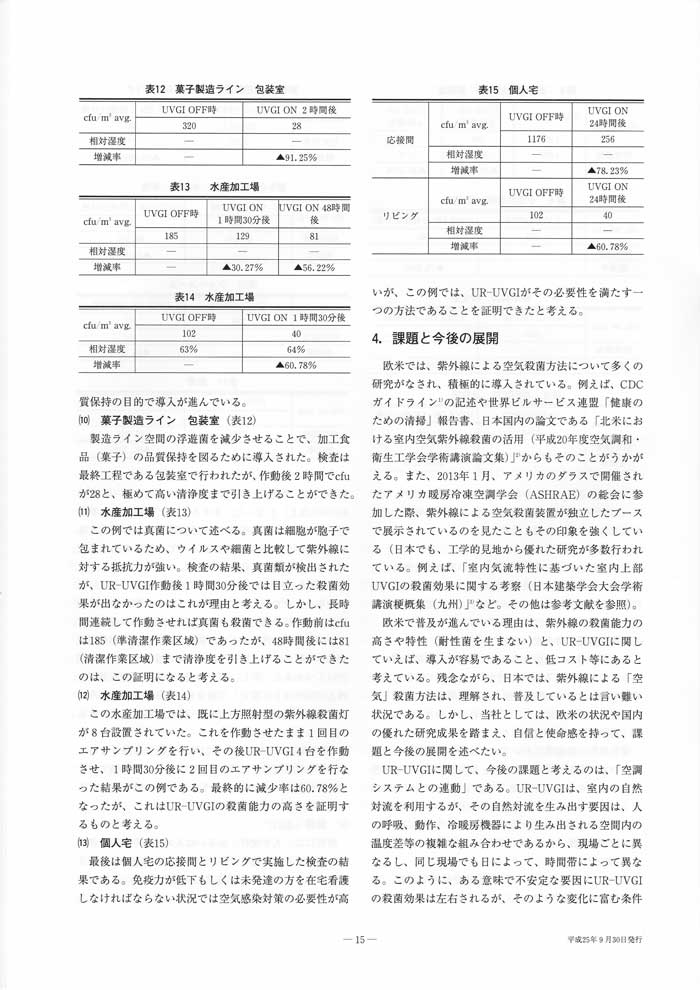 紫外線による空気殺菌 現場からの報告