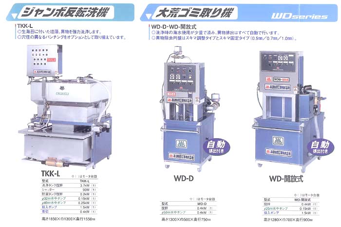 ワタナベ ジャンボ反転洗機、大荒ゴミ取り機、小ゴミ取り機